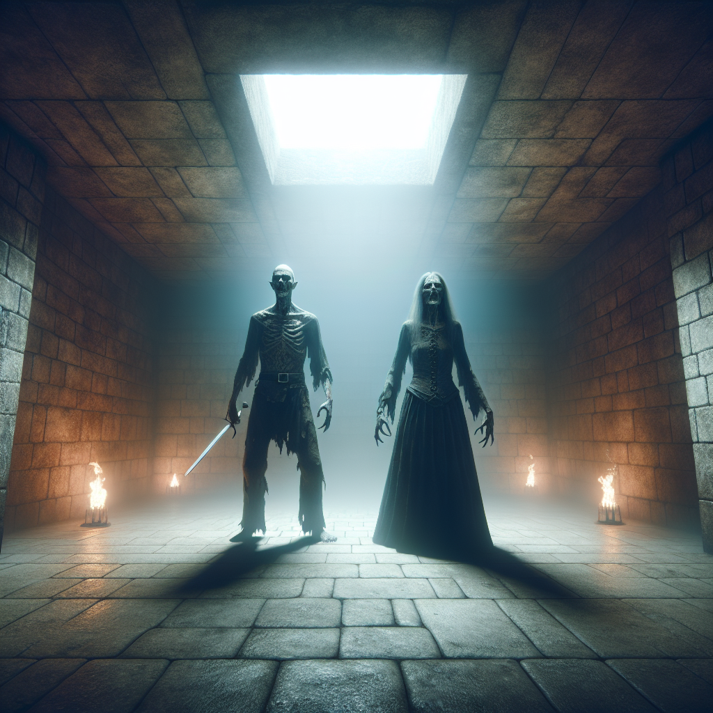 Das leise Tropfen in der Dunkelheit hallte wie ein Taktgeber, während die Abenteurer in ihrem provisorischen Rastplatz die letzten Spuren des Kampfes abstreiften. Der Geruch von verbranntem Leder und Metall hing noch in der Luft. Von weit hinten, in der Finsternis des seitlichen Tunnels, kam ein rhythmisches Stampfen – langsame, gleichmäßige Schritte, begleitet von einem metallenen Scheppern, als ob jemand einen Eisenhammer gegen einen Schild lehnen würde.
